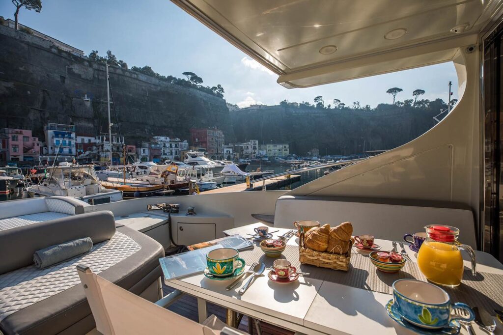 ZEUS’ best feature is arguably her superb exterior living spaces. Complete with a stainless steel kitchenette, grill and comfortable seating, the aft deck is designed for breakfasts with a view, luxury alfresco dining and optimal relaxation in the shade. Meanwhile, the forward sundeck is perfect for sunbathing and offers spectacular views of the charming and rugged Italian coast. The deck upholstery has been recently refurbished, providing an extremely comfortable cruising experience for all her guests.
